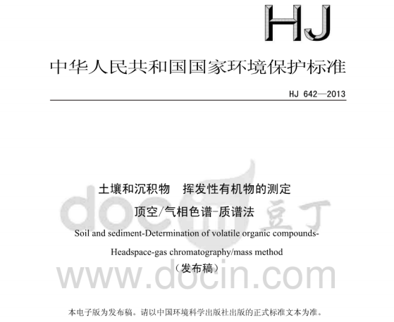 HJ642-2013土壤和沉積物揮發(fā)性有機(jī)物的測(cè)定頂空氣相色譜—質(zhì)譜法 揮發(fā)性有機(jī)物(VOCs)是指沸點(diǎn)在50-250 C 范圍內(nèi)的一系列化合物,因其廣泛應(yīng)用于化工原料和有... 更新日期:2020-05-29 下載包(1)